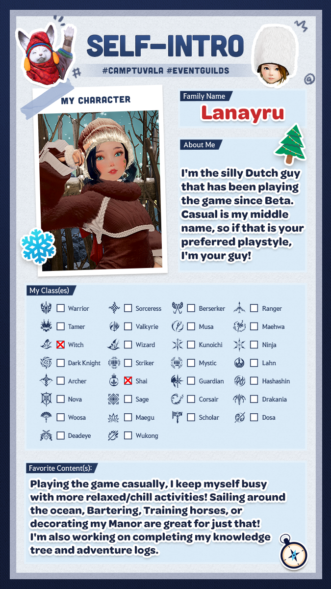 - Die Gilden des „Camp Tuvala“ sind als Einstiegsgilden für neue und wiederkehrende Abenteurer gedacht! Daher sind die Plätze für erfahrene Abenteurer, die helfen möchten, begrenzt.