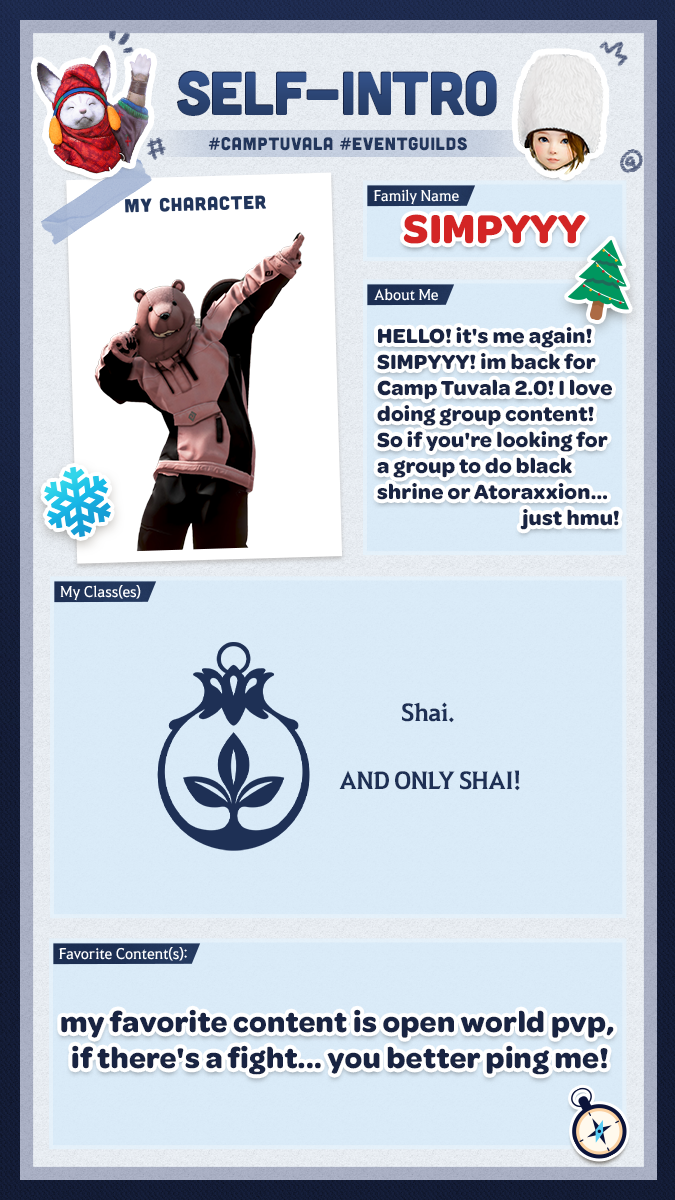 Im Camp Tuvala habt Ihr die Chance, einer anfängerfreundlichen Gilde beizutreten und dort von erfahrenen Abenteurern zu lernen und gemeinsam Gruppenaktivitäten zu unternehmen. Der vor Euch liegende Pfad ist voller Geheimnisse und Ihr könnt sie alle gemeinsam mit einer starken Community an Eurer Seite erleben und lüften.