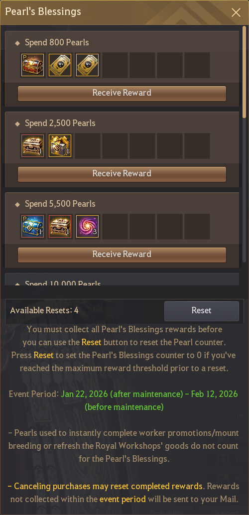 you can reset Pearl's Blessings to earn more rewards!