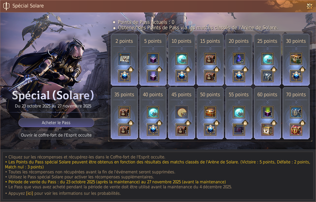 Participez à des match classés dans l’Arène de Solare et récoltez des points de pass.