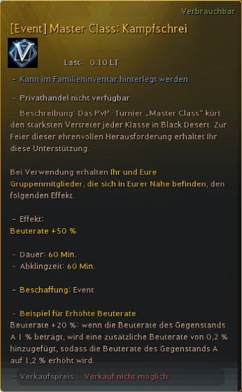 * Zusätzliche Hinweise - Belohnungen, die über das [Twitch Drop-Inventar] beansprucht wurden, werden Eurem Web-Lager hinzugefügt, wenn Ihr auf „Drops abholen“ auf der Seite des [Web-Lagers] klickt. - Pearl Abyss bleibt vorbehalten, das Event je nach Umständen zu verändern oder zu annullieren. Alle Änderungen werden über diese Event-Seite und nicht separat bekannt gegeben. - Event-Gegenstände können Einschränkungen beim Handel, Verkauf oder Verwendungszeitraum besitzen und der Bindungsstatus kann sich bei jedem Gegenstand unterscheiden. Aus diesen Gründen können diese Gegenstände weder übertragen noch wiederhergestellt werden. - Um mehr über den Bindungsstatus eines Gegenstands zu erfahren, schaut in der Gegenstandsbeschreibung im Spiel nach. - Erhaltene Gegenstände oder Belohnungen, die auf gewöhnliche Weise verbraucht wurden, können nicht wiederhergestellt werden. - Eine Teilnahme mit unangemessenen Methoden kann zur Absage des Events, zum Einzug der Belohnungen sowie zu Einschränkungen beim Spielzugriff führen. - Solltet Ihr Fragen zum Event haben, so sendet uns einfach eine Anfrage über den [Kundenservice]. - Alle hier nicht aufgelisteten Inhalte unterliegen den [Event-Regeln]. |