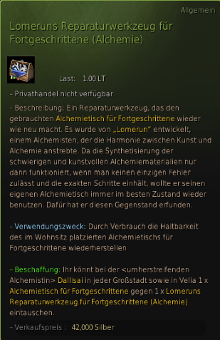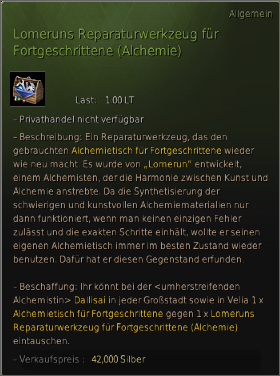 - Lomeruns exzellentes Reparaturwerkzeug (Alchemie)/Lomeruns Reparaturwerkzeug für Fortgeschrittene (Alchemie)