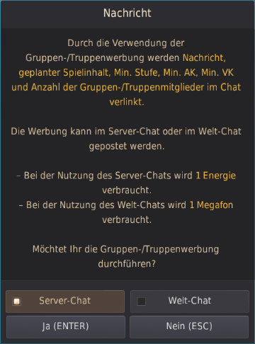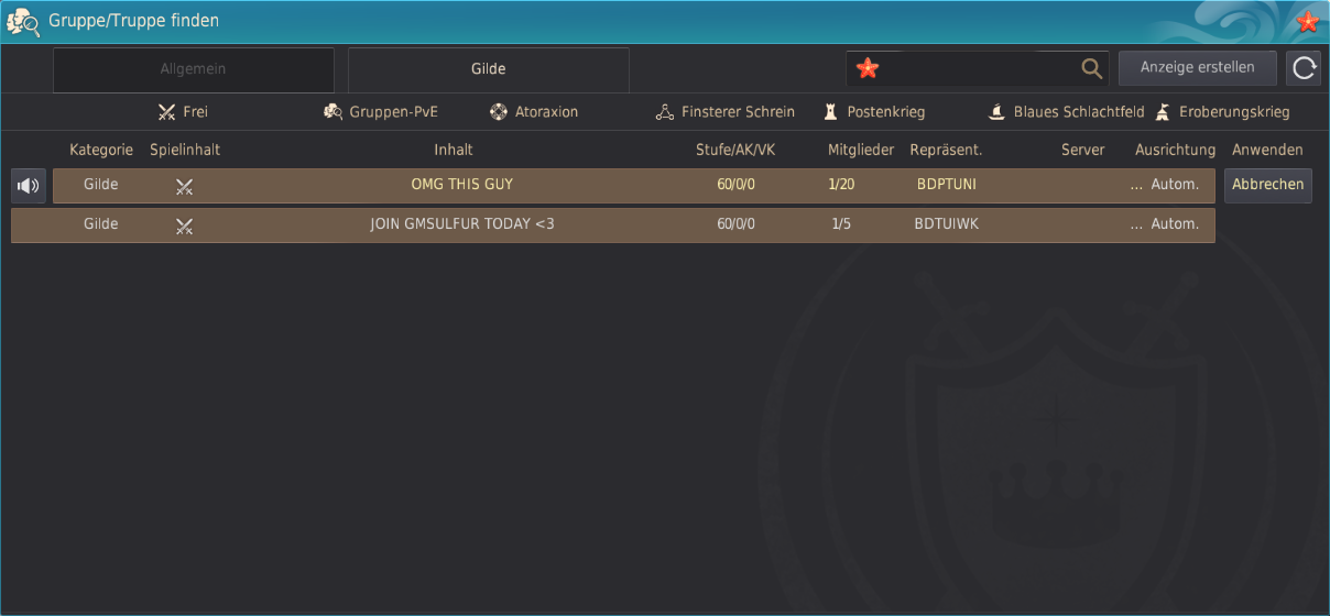 - Während die Gildenliga im Gange ist, kann man die Duell-Funktion nicht mehr verwenden.