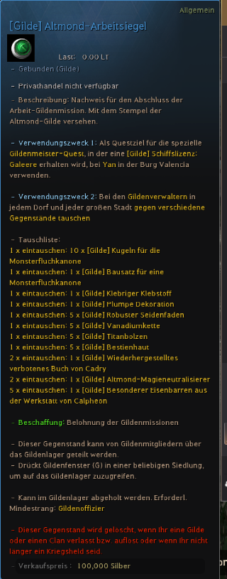 Tausch gegen [Gilde] Altmond-Kampfsiegel/-Arbeitssiegel oder 10 x Schwefel 1 x Hummer |
