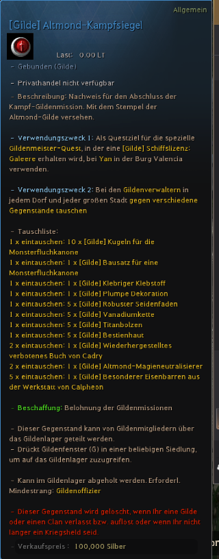 Tausch gegen [Gilde] Altmond-Kampfsiegel/-Arbeitssiegel |