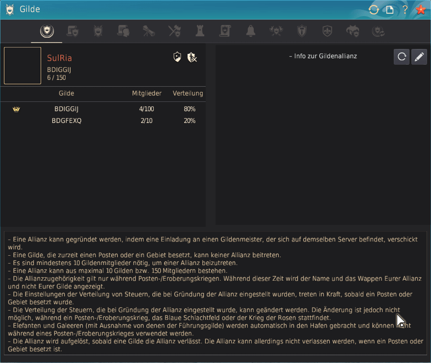 - Es wurde ein Problem behoben, bei dem es bei der Allianz-Einladung so aussah, als würde die Einladung versendet werden, obwohl der Gildenmeister auf einem anderen Server war.