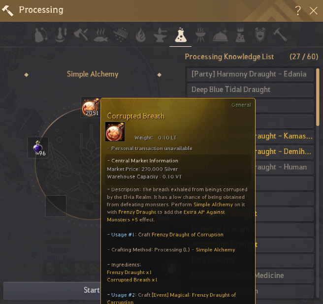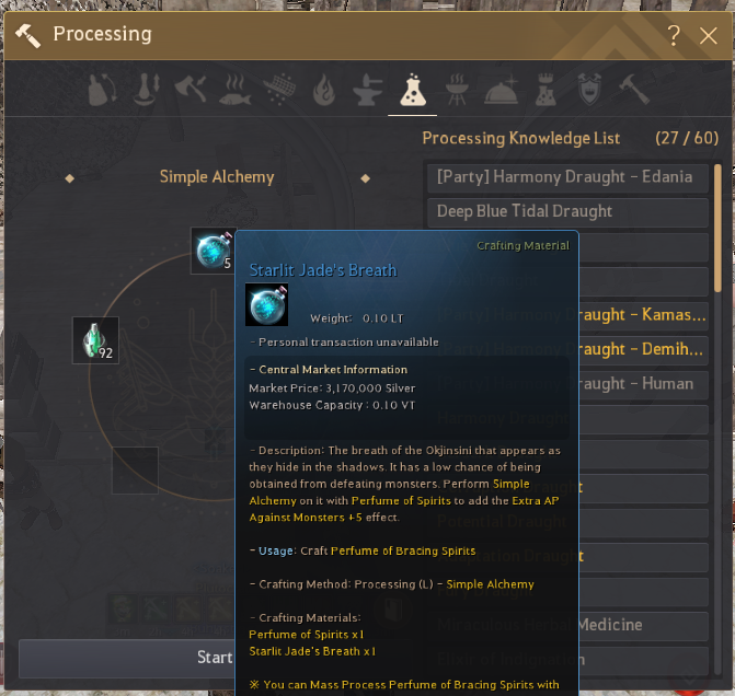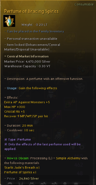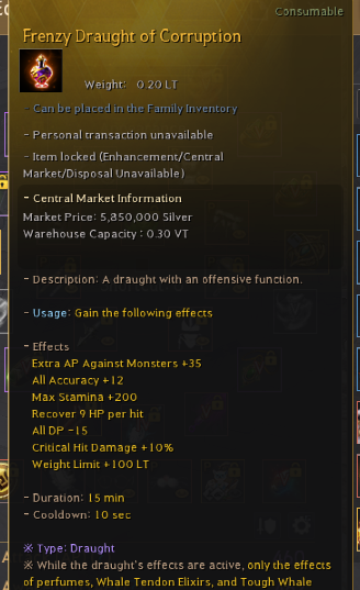 harmony draughts doesnt have all resistance that everyone need to wear 2 crystal resistance just to hit 100% resistance , you can hit 100% with elixir rotation coz you can pop them individually, The Corruted Breath are item you get on Calpheon Elvia that been ignore for a long time coz you can only use it on Frenzy draught which lets be honest majority of players use harmony draughts now so is already existing in the game just needed to add it all to all Draughts same thing to Starlit Jade's Breath you simple alchemy it to Spirit perfume to get 5 monster AP why not add it to all perfumes its already in the game
