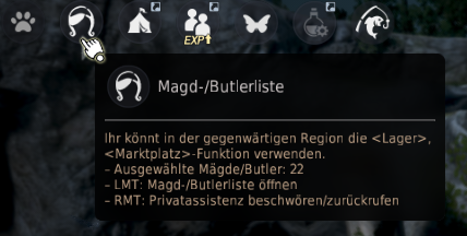 - Mit RMT auf das Magd-/Butlerlisten-Symbol auf dem Spielbildschirm könnt Ihr die Privatassistenz beschwören.