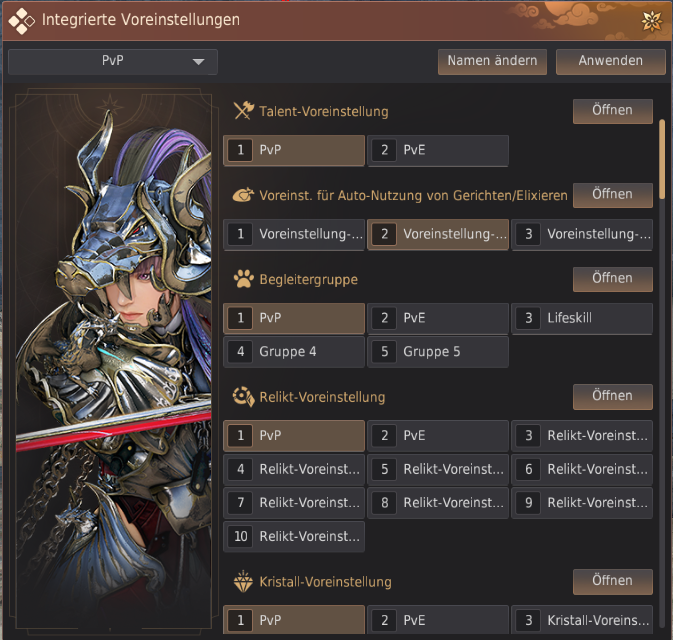 - Beispiel: Wenn nur 5 Begleiter-Voreinstellungs-Slots freigeschaltet sind, werden auch in der integrierten Voreinstellung nur 5 Slots angezeigt.