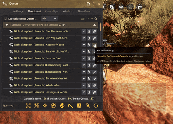 Es wurde eine neue Funktion zum Teilen von Quest-Infos hinzugefügt, mit der ihr Informationen zu euren Quests jetzt noch einfacher und präziser weitergeben könnt.Bisher war es oft mühsam, bei Problemen oder schwierigen Abschnitten alle Details umständlich per Chat zu erklären. Dank der neuen Teilen-Funktion könnt ihr euch nun deutlich entspannter gegenseitig unterstützen. Wir hoffen, dass euch dieses Extra bei euren Abenteuern eine echte Hilfe sein wird.
