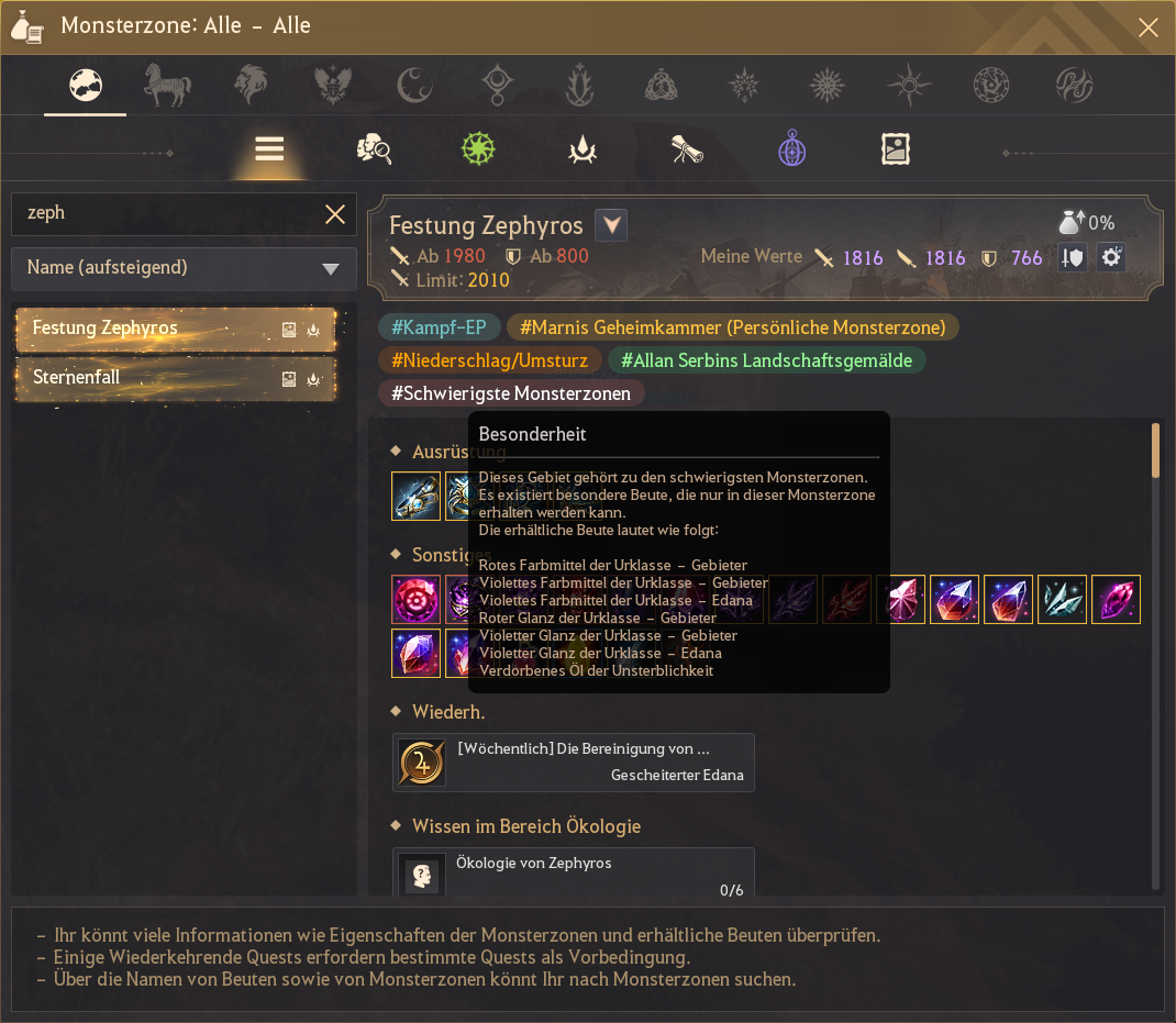 - Zur Monsterzonen-Info der Festung Zephyros wurde das Tag #Schwierigste Monsterzonen hinzugefügt.