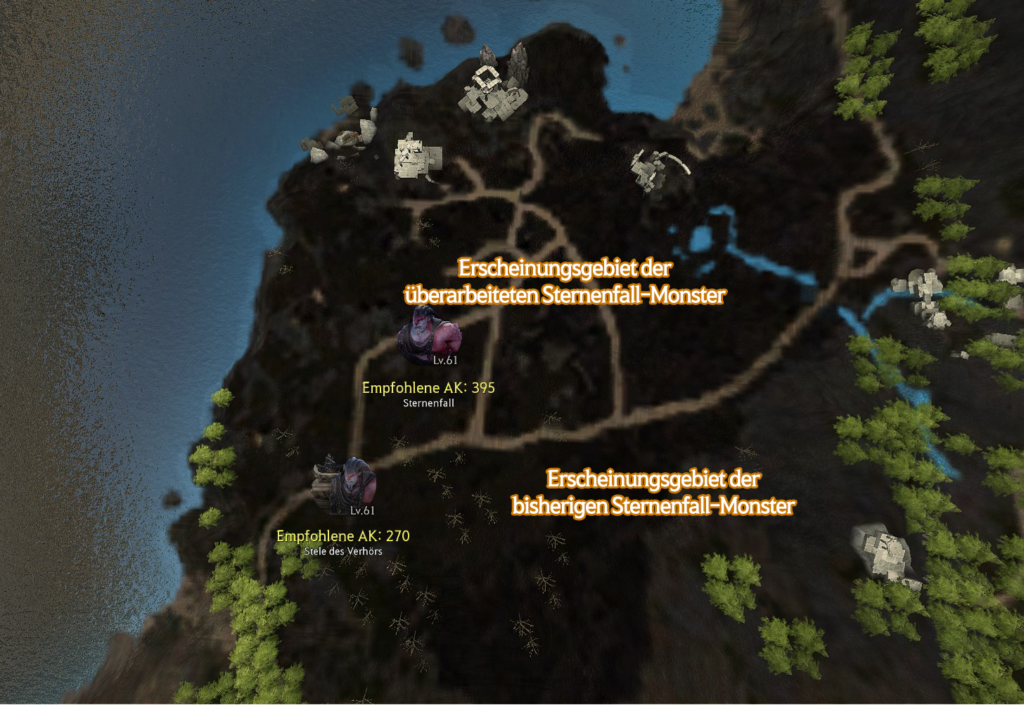 - Bei den Quests, die das Besiegen bisheriger Sternenfall-Monster als Ziel hatten, wurde der Ziel-Navigationspunkt geändert.