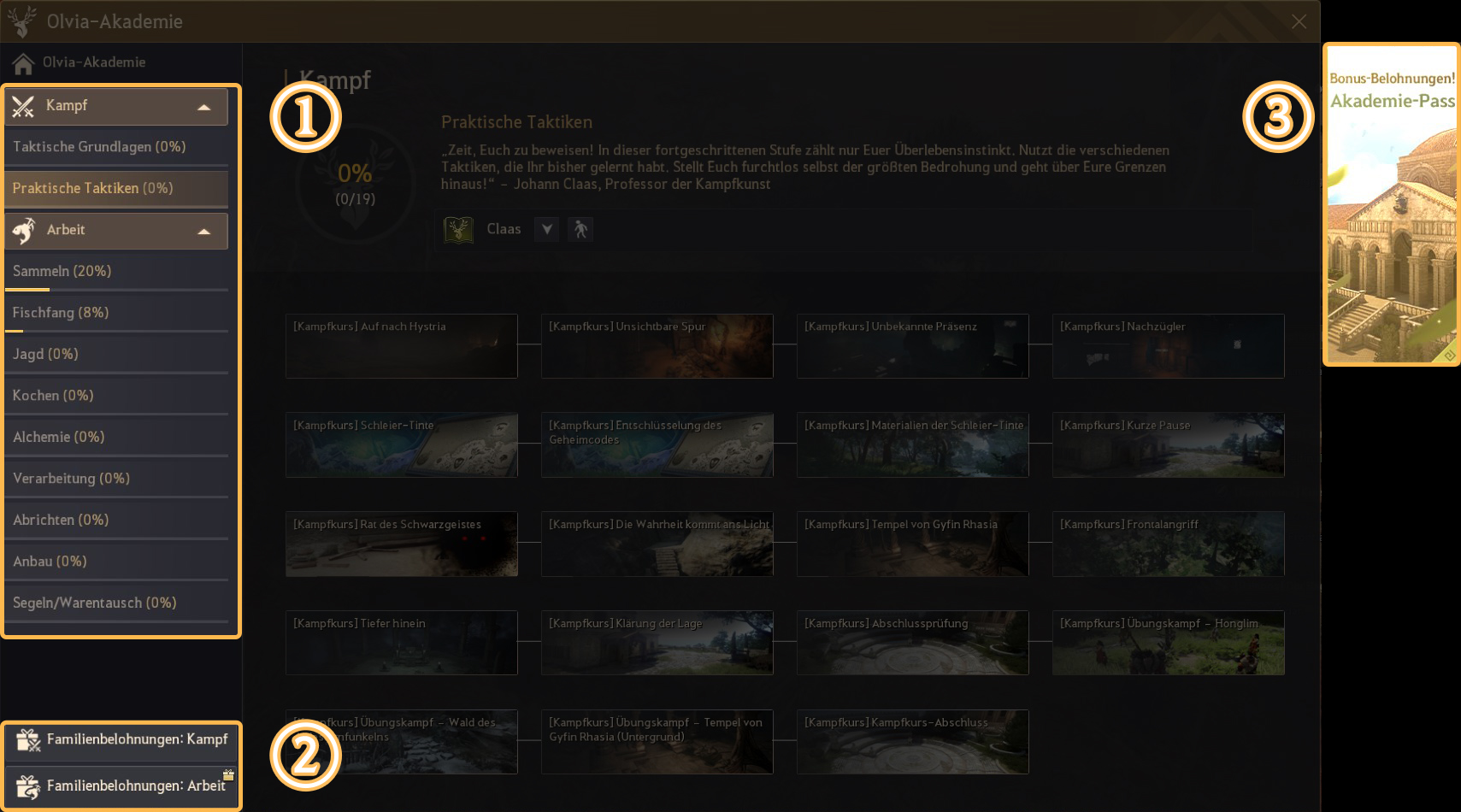 ③ Durch Akademie-Pass könnt Ihr zusätzliche Belohnungen erhalten.