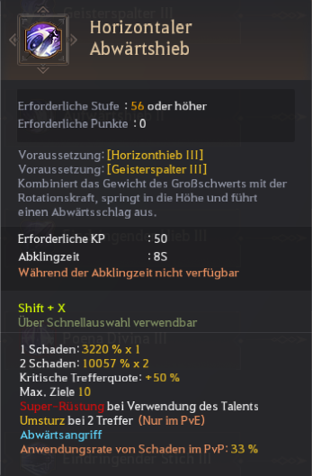 - Es wurde verbessert, dass man während der Aktivierung nach vorne und zu den Seiten nun geschmeidig mit anderen Talenten kombinieren kann.