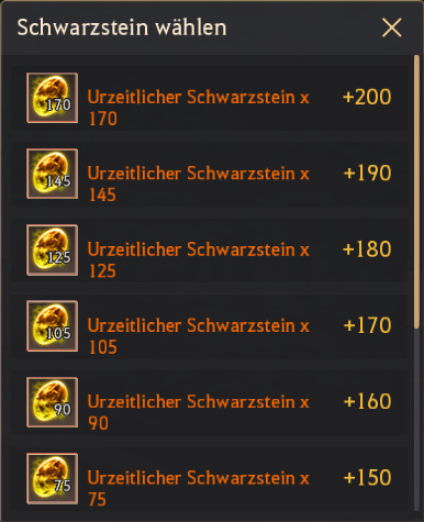 | Anzahl benötigter Urzeitlicher Schwarzsteine | Verstärkungschance |