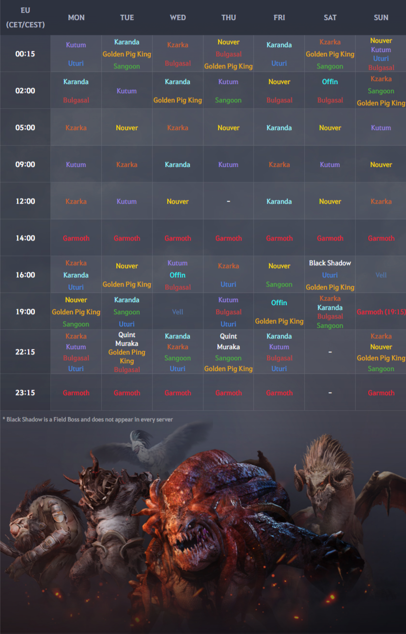 Zeitplan für das Erscheinen der Weltbosse (in Black Desert)