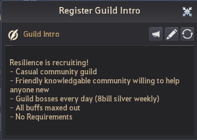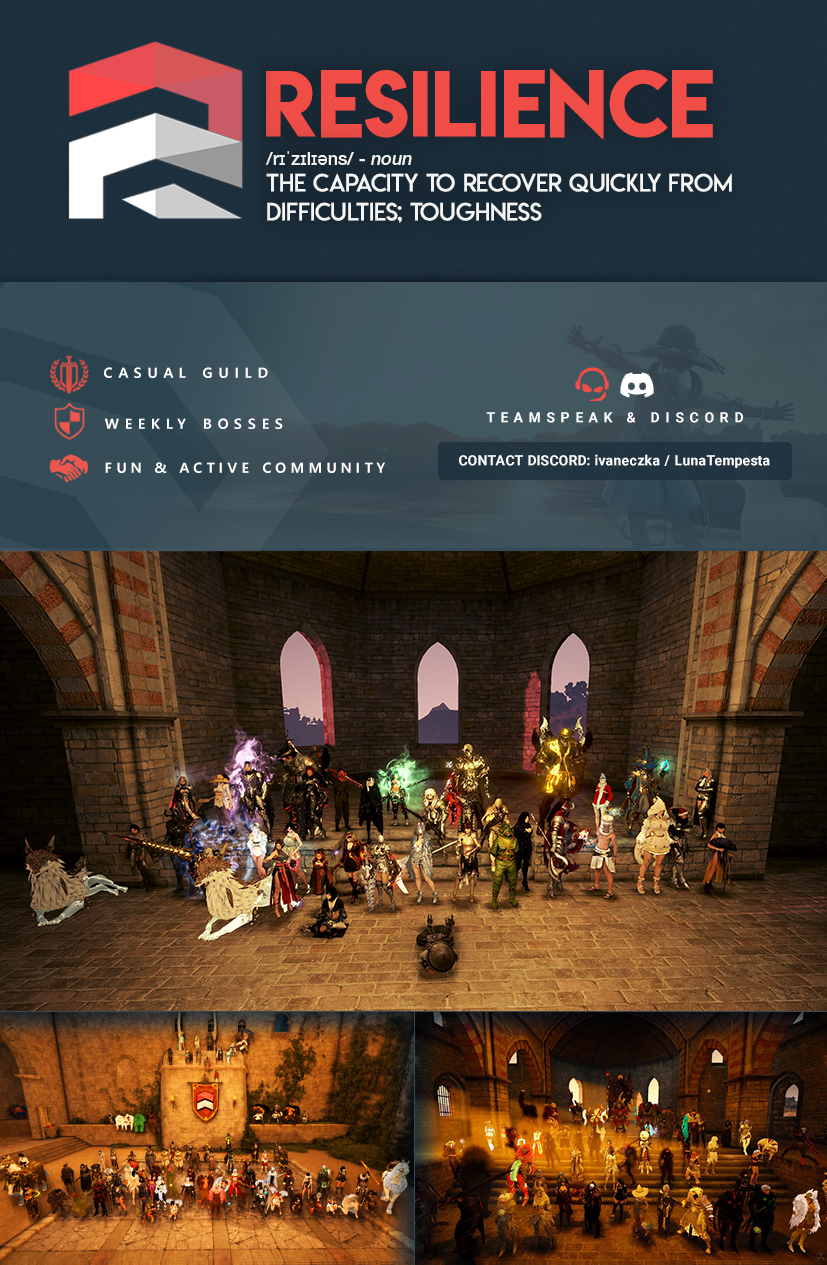 About us: Resilience is casual community guild that used to be one of top PvP guilds on server but for a lot of us life happened and we cant play as hardcore as before. We are mainly casual Veterans now just chilling with friendly community and trying to help out anyone who needs it.
