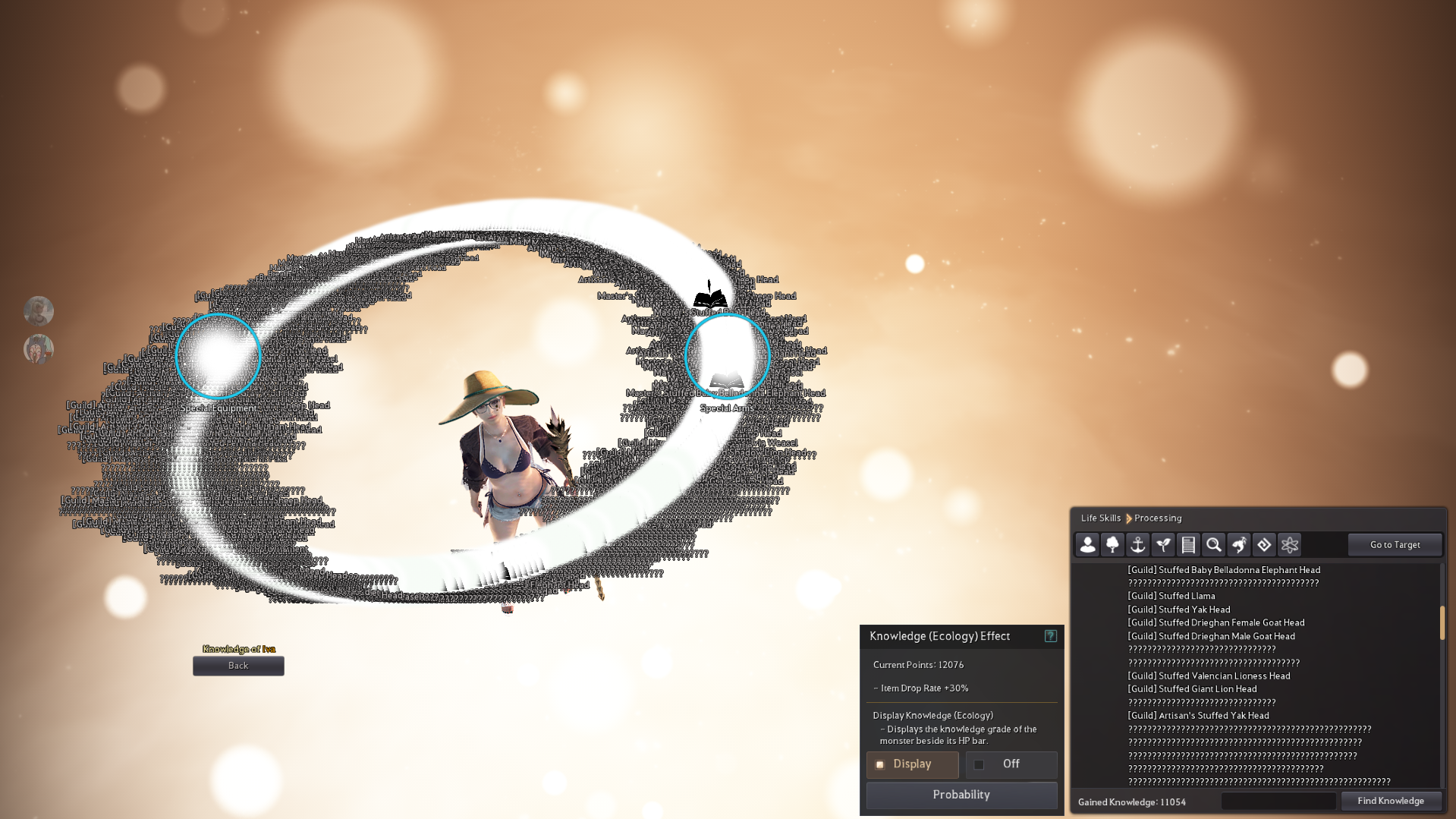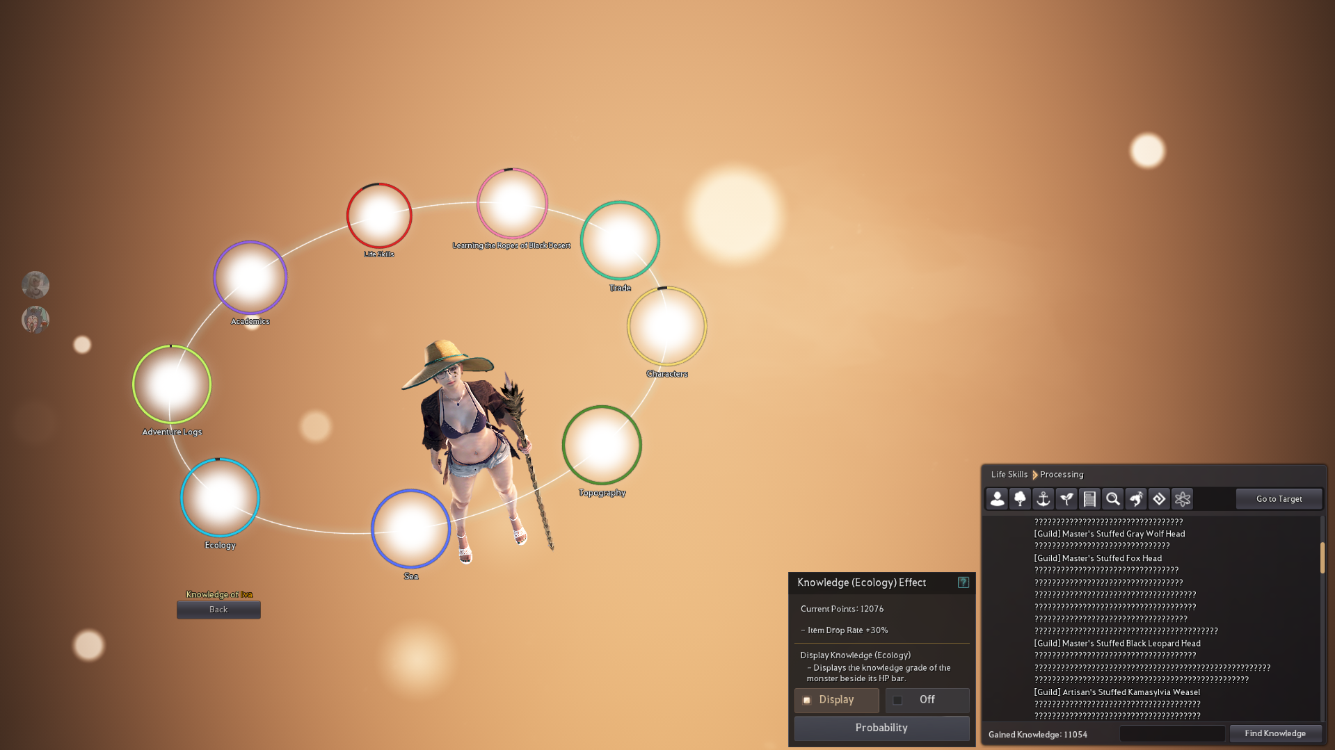 This could bring new life if PA decides to make ALL knowledges somehow obtainable instead of removing only ways to acquire those (Fughar's Secret Method, Luis Pollak's Memories, Forbidden Love, King Domongatt, Altar of Blood and others), instead of just adding next to some of them pitiful ※ Currently unobtainable due to unavailable event quest. message. This whole knowledge system indeed needs some love, but at the moment there is absolutely no point for most of new players to even try and go past 10,000 ecology points for 30% droprate because of how unrewarding and scuffed it is at the moment. Techically, being proud, happy or satisfied from completing something to 100% is rewarding enough (for some), but even that is unachievable if your account was created after some content was removed, but knowledge entries remained. PA, please, for the sake of sanity and clear and enjoyable content - either give us a way to obtain ALL knowledges (through grind, questing, insane amity or ANYTHING), or just delete unobtainble ones entirely, knowledges are not the titles, they should not be time/event limited:(