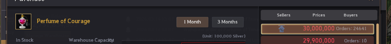NA market had about 20k Perfume of Courage in stock 2 weeks ago. Now 5k perfumes are sold daily