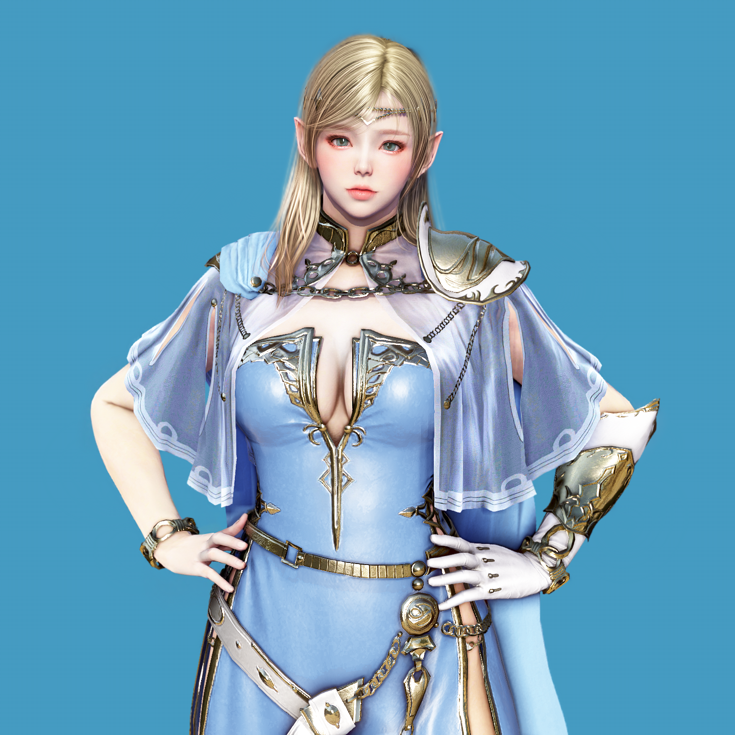 A powerful look, pairing the Lunar Blue Helmet with Taebaek Armor.