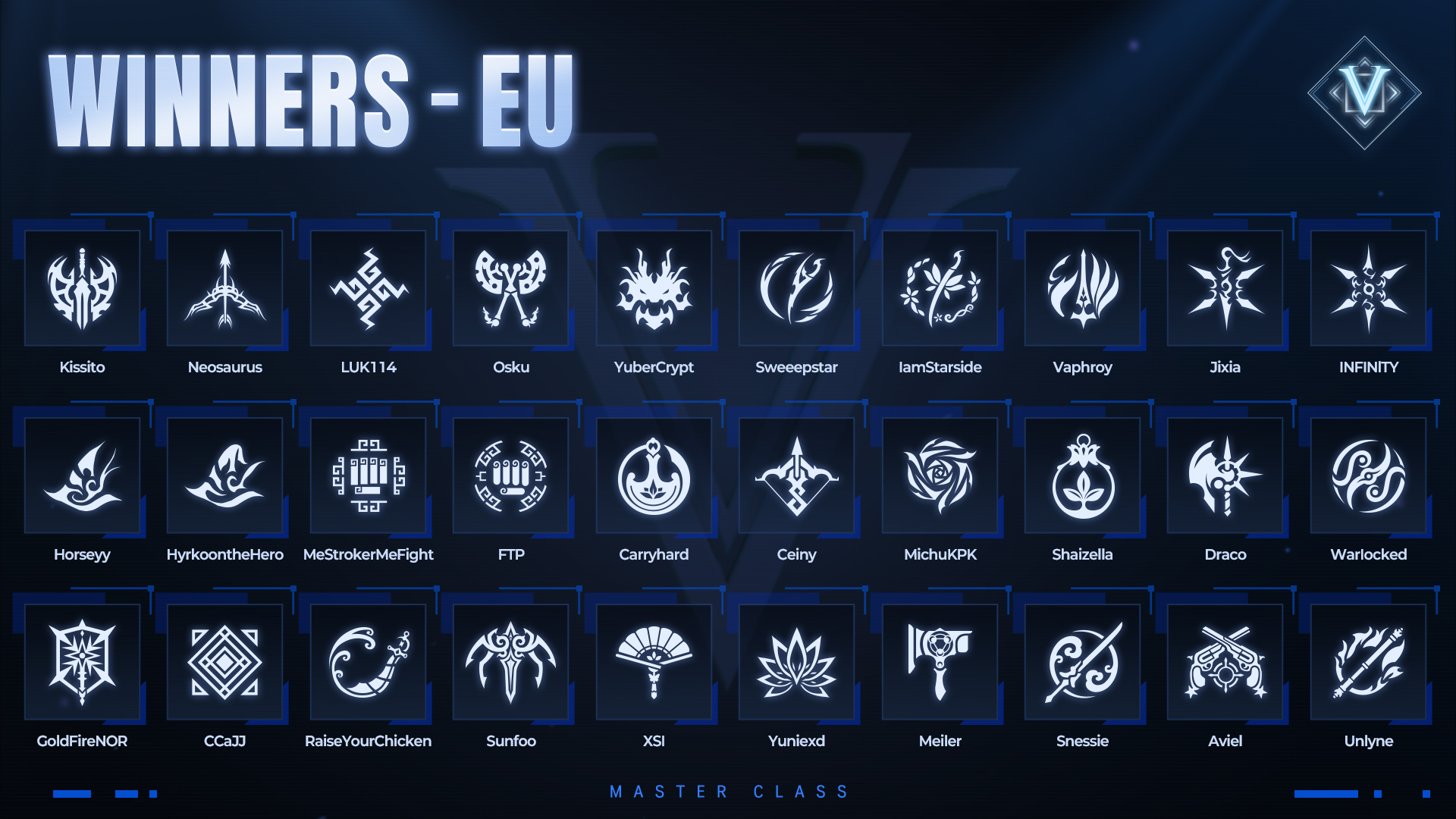 plus a unique title "MASTER [Class Name]" featuring their winning class.