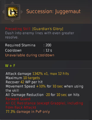 - Auto-activates when performing Juggeranut upon learning Succession: Guardian's Glory.
