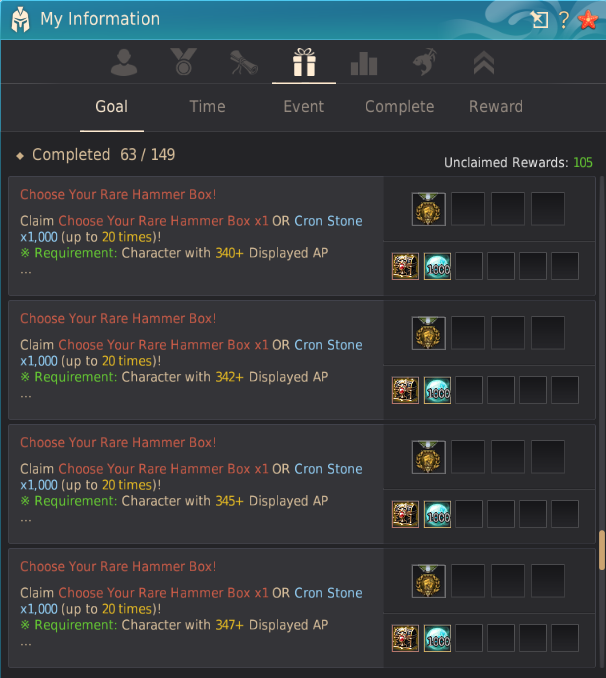 - Updated the "Choose Your Rare Hammer Box!" Challenges so they no longer display under Challenge (Y) - Reward unless their requirements are met. You can now find them under the "Goal" tab.