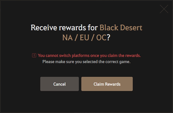 Make sure your selected game and region are correct, then click [Claim Rewards].