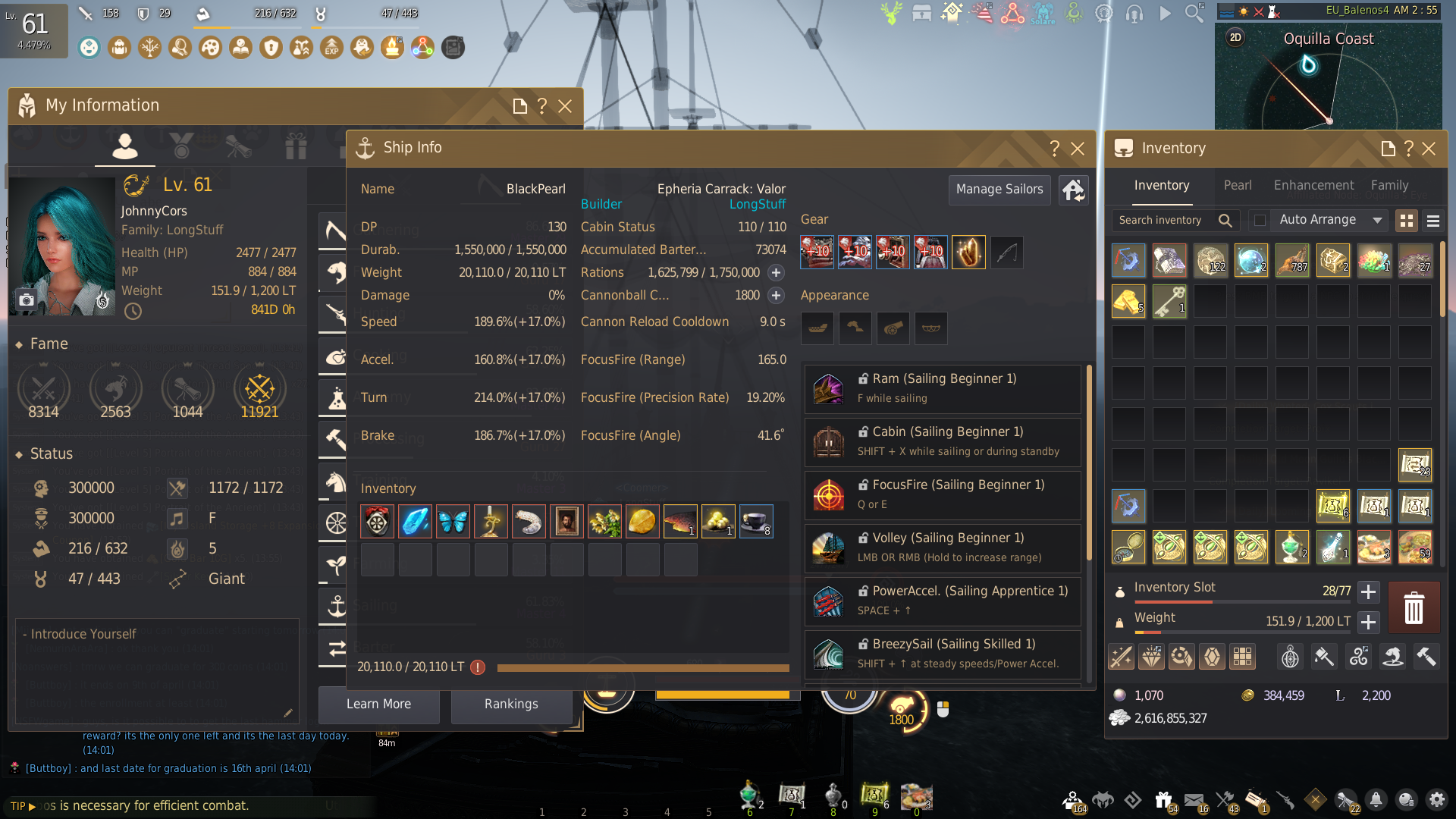 Breezy Sail: The durability of the ship must be above 50%, and its inventory weight below 100% of the weight limit.