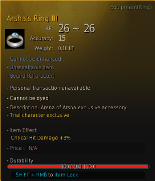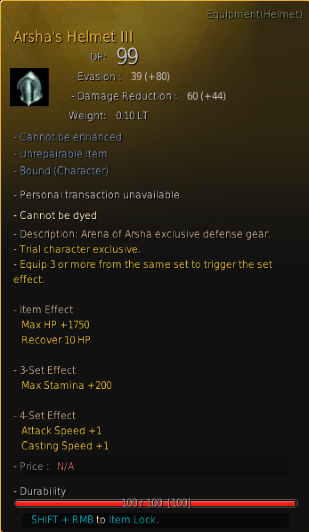- Released Arena of Arsha III gear, now obtainable for Trial Characters.