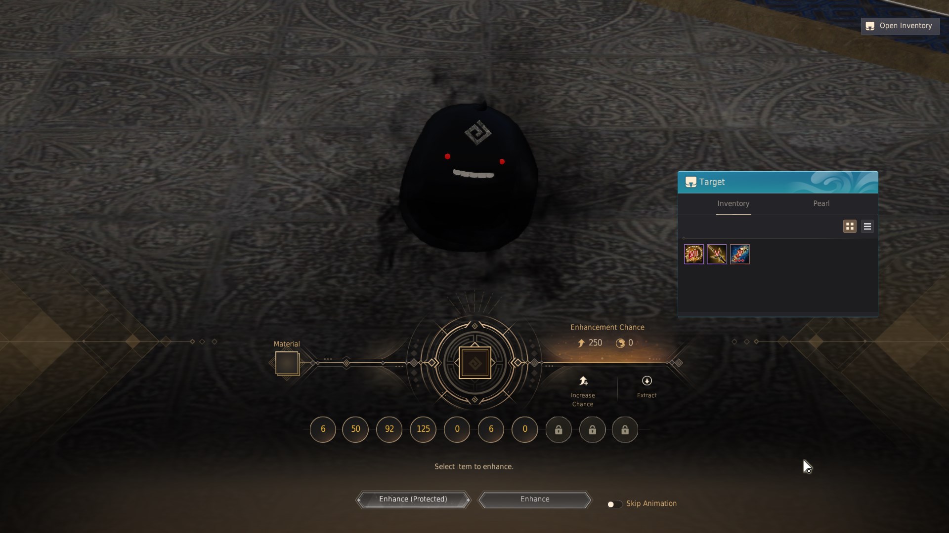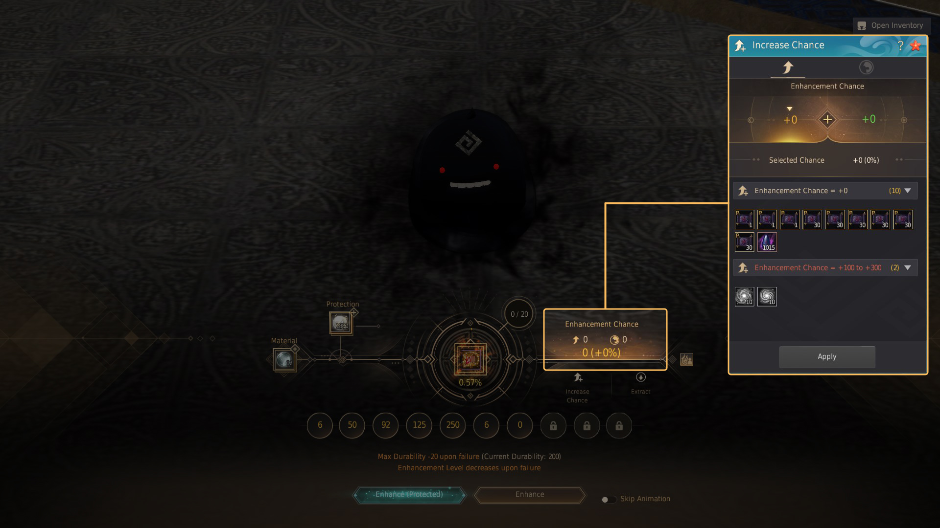 - Press the "Enhancement Chance" area to select and apply items that increase Enhancement Chance.
