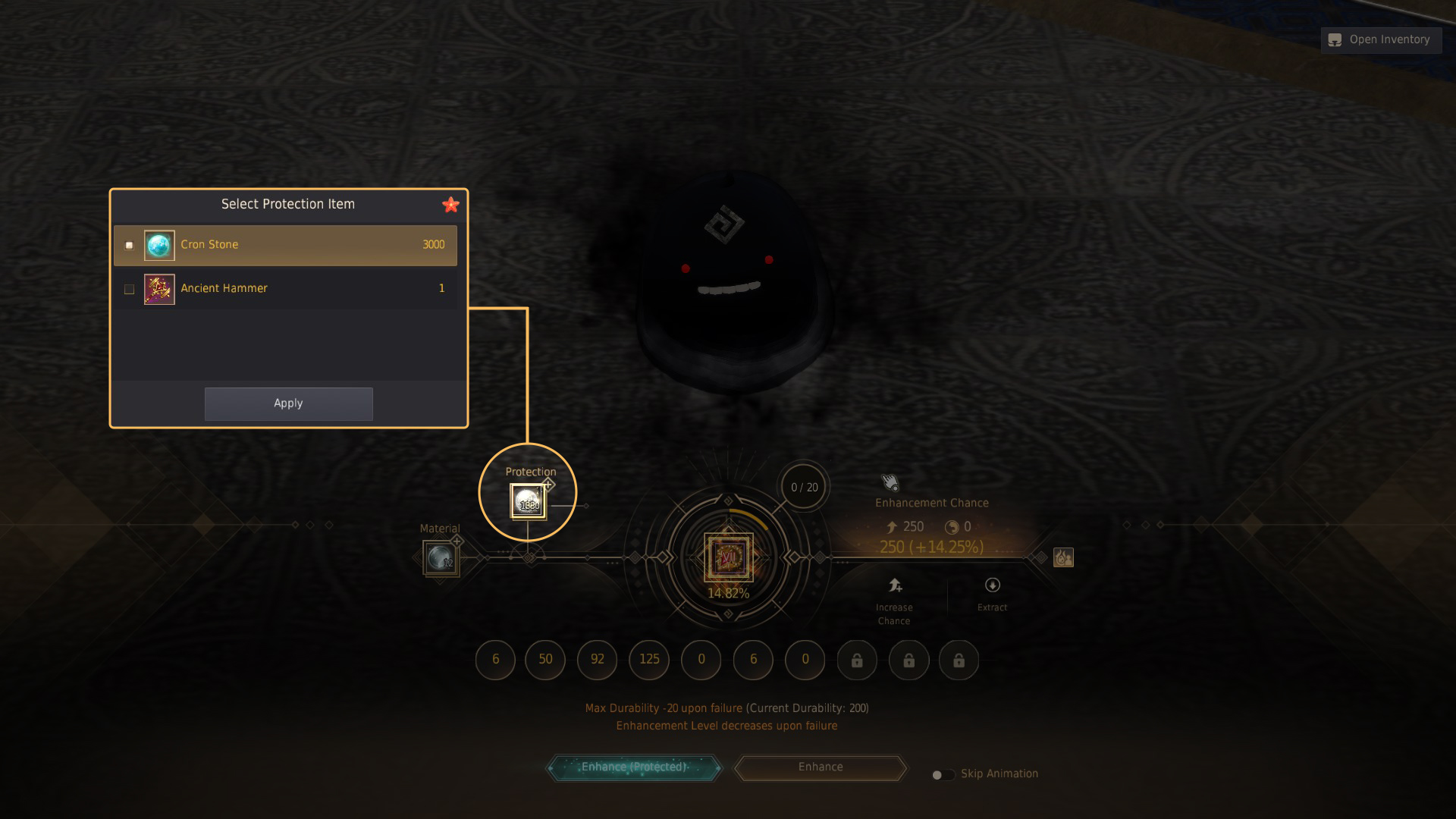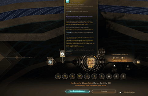 - Split the enhancement button into "Enhance (Protected)" and "Enhance." The "Enhance" button will only activate when no protection material is registered.