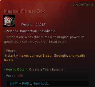- Added an item to increase a Trial Character's Fitness stats to the max.