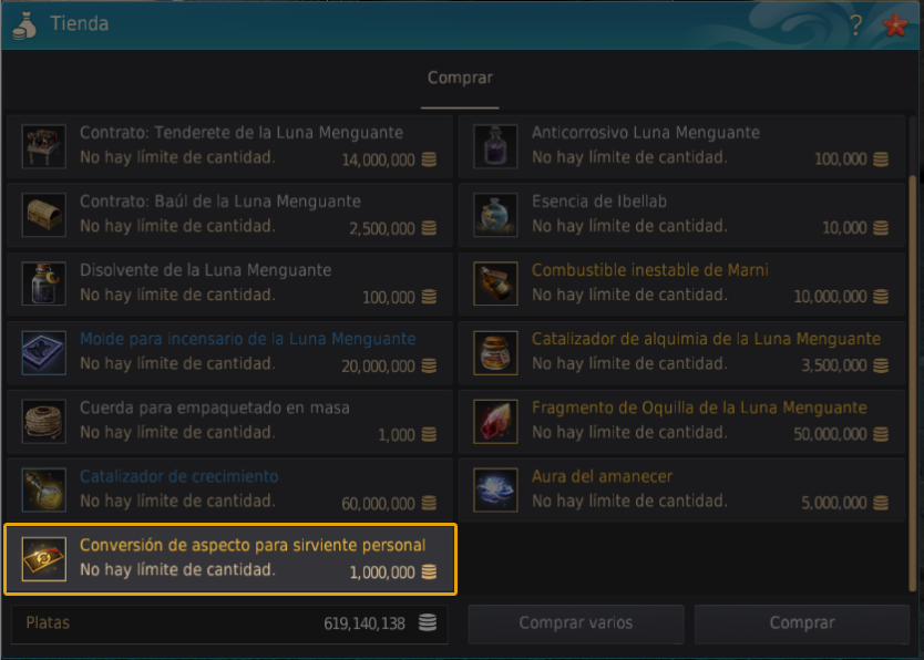 - Puedes comprar este objeto a los responsables de la Luna Menguante en cualquier ciudad o pueblo por 1.000.000 platas.