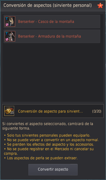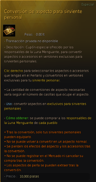 - Se pueden extraer los aspectos de perla convertidos en exclusivos para sirviente personal.