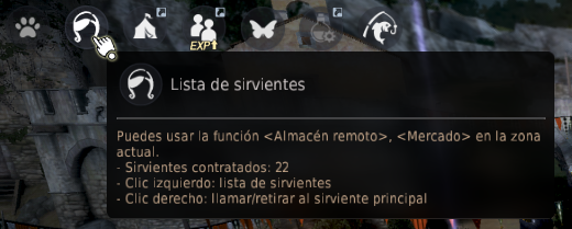 - Si haces clic derecho en el icono del menú de la lista de sirvientes en la pantalla del juego, podrás invocar a tu sirviente personal.