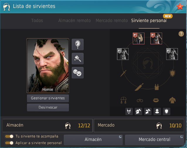 - Desde este menú podrás crear y gestionar a tus sirvientes personales.