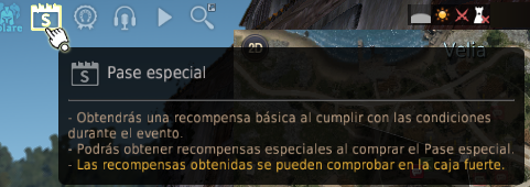- Las recompensas del Pase especial diario se recogen en la Caja fuerte (B).