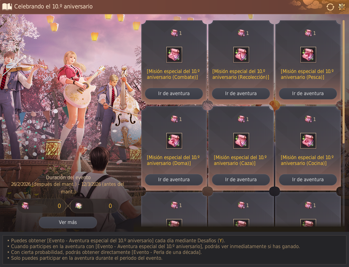 - El objeto [Evento - Aventura especial del 10.º aniversario], obtenido en la ronda 1, se eliminará en el mantenimiento del 12 de marzo de 2026 (jueves)