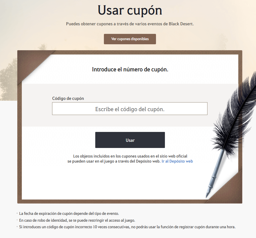 Escribe el código en Usar cupón para recibir las recompensas en el Buzón del juego.