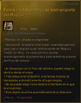 - [Permiso del dispositivo de teletransporte del Magnus] se usa automáticamente en cuanto lo consigues.