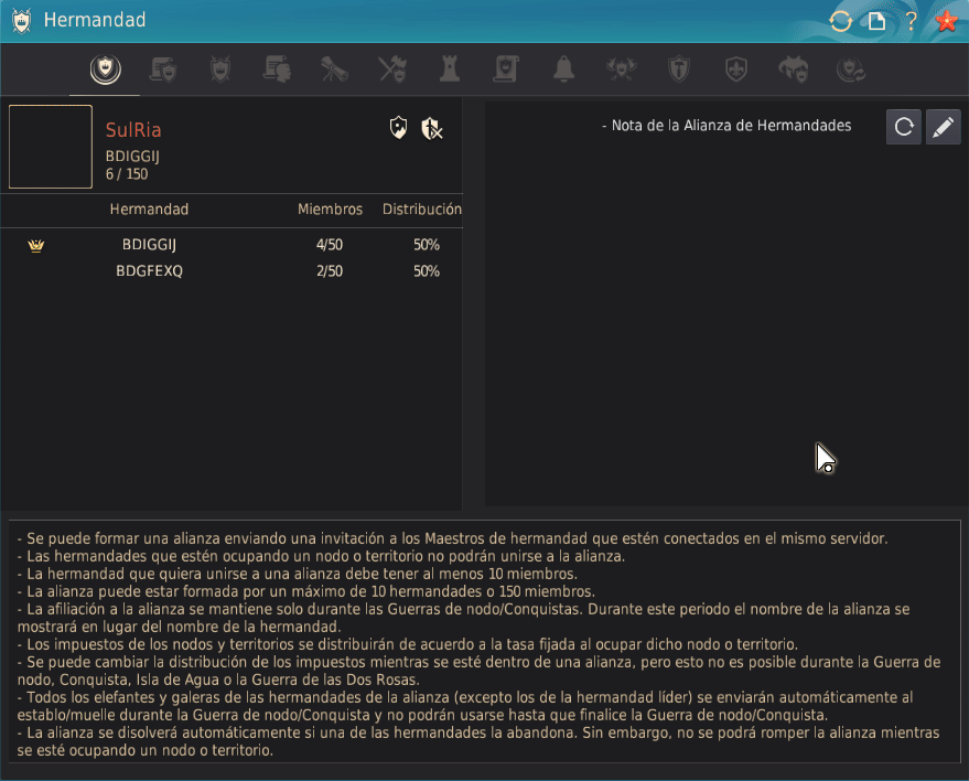 - Se ha corregido el error que hacía que, al fundar una alianza, pareciera que la invitación se enviaba incluso si el maestro de hermandad estaba en otro servidor.