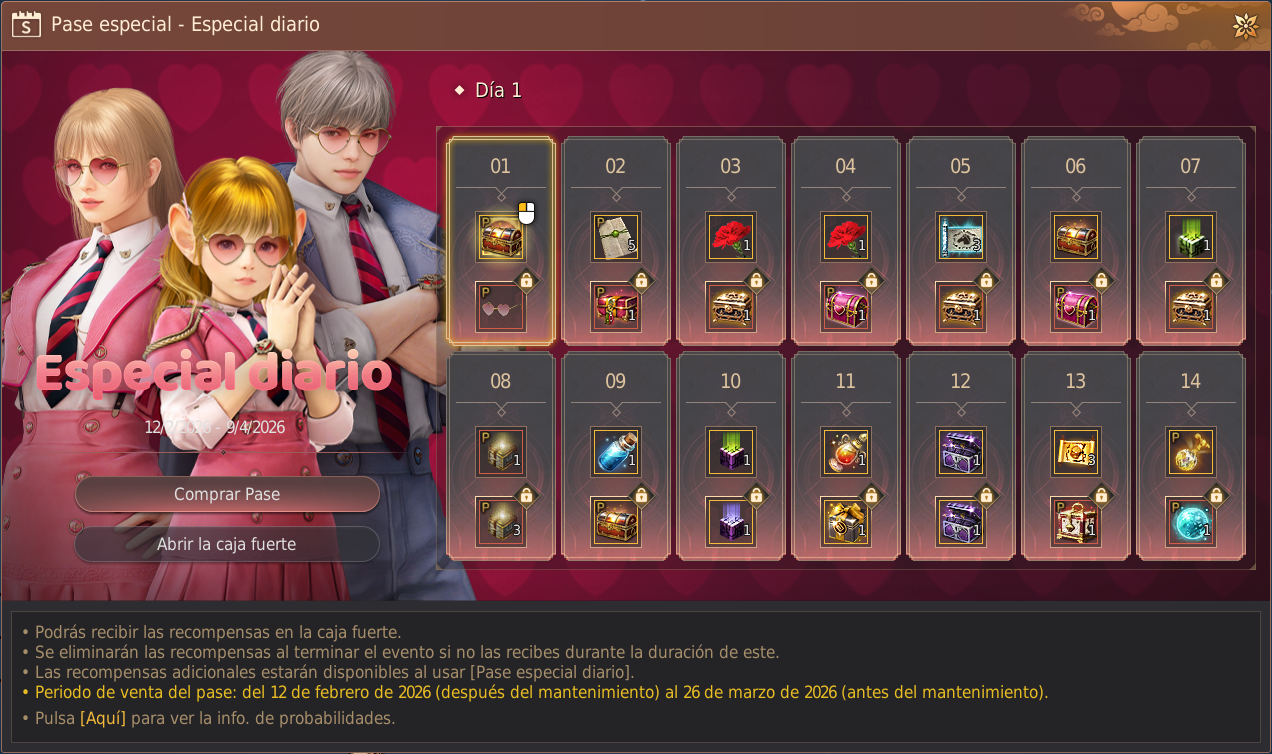 Pase diario y recompensas del especial diario
