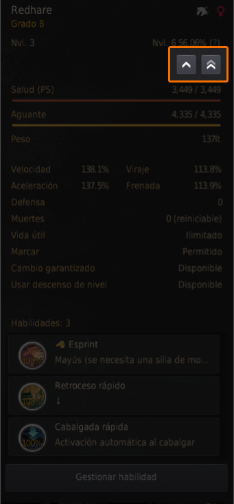 - Al pulsar este botón, verás el nivel máximo que la montura puede alcanzar y, si lo confirmas, esta subirá de nivel.