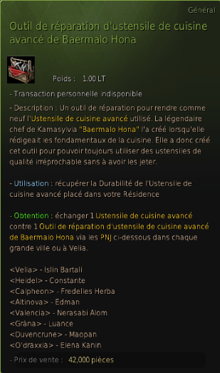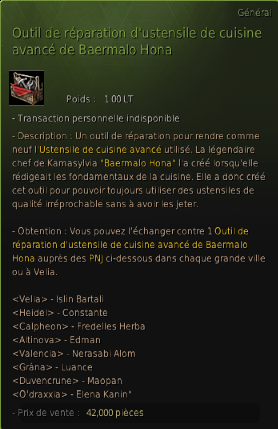- Ajout d'une mention dans la description des objets suivants concernant leur utilisation.