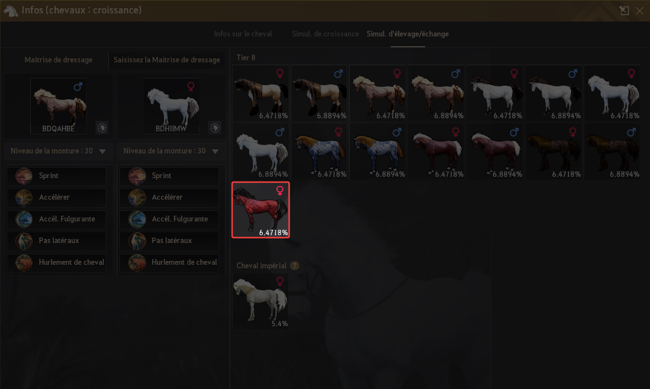 Lors de l’élevage de chevaux Tier 6-8 d’un niveau suffisant, il existe une probabilité fixe de voir naître un Lièvre Rouge.