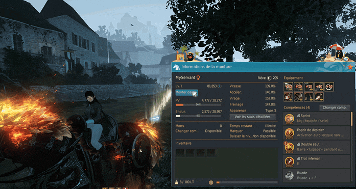 • La croissance de monture peut être effectuée à l'Écurie ou via la fenêtre Informations de la monture.