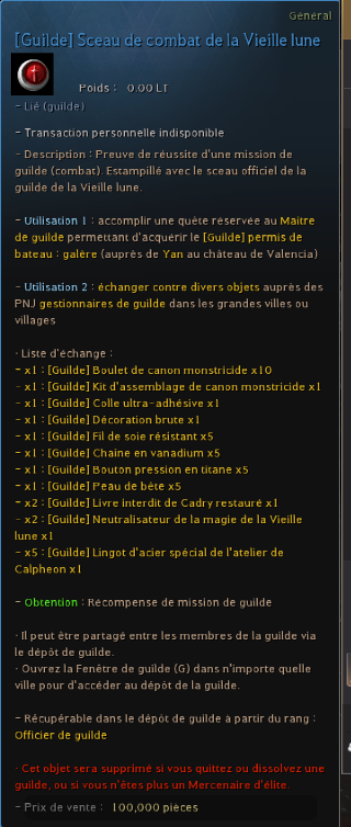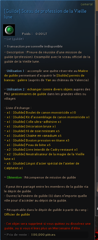 Échange de [Guilde] Sceau de combat/profession de la Vieille lune