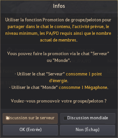 • Modification apportée afin que l'utilisation de la fonction Duel soit impossible pendant la Ligue des guildes.