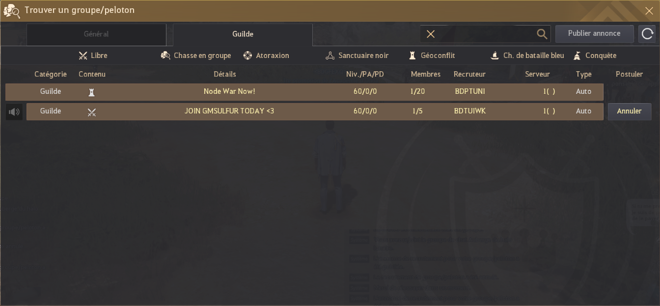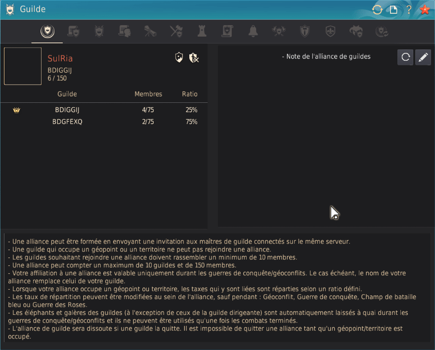 • Correction de l'erreur où l'invitation semblait s'envoyer lors de la création d'une alliance même si le Maître de guilde se trouvait sur un autre serveur.